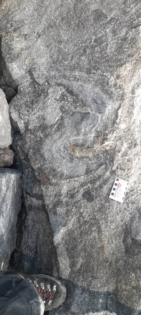 View from the Lillebukt Mine north,Flattened enclaves of nepheline syenite pegmatite in carbonatite. Are these evidence of in situ liquid immiscibility?,Complex interaction of carbonatite “dykes” cutting the nepheline syenite